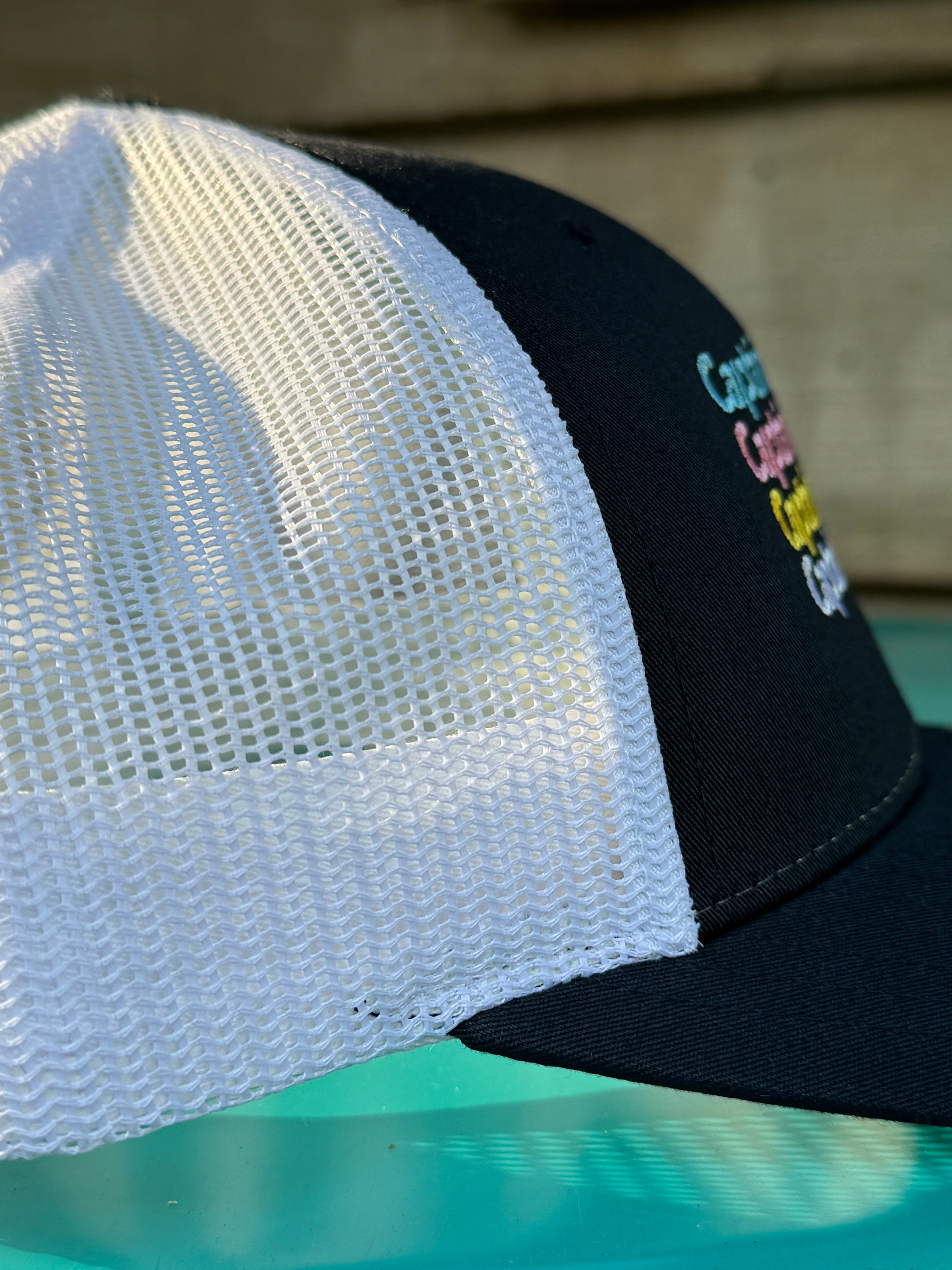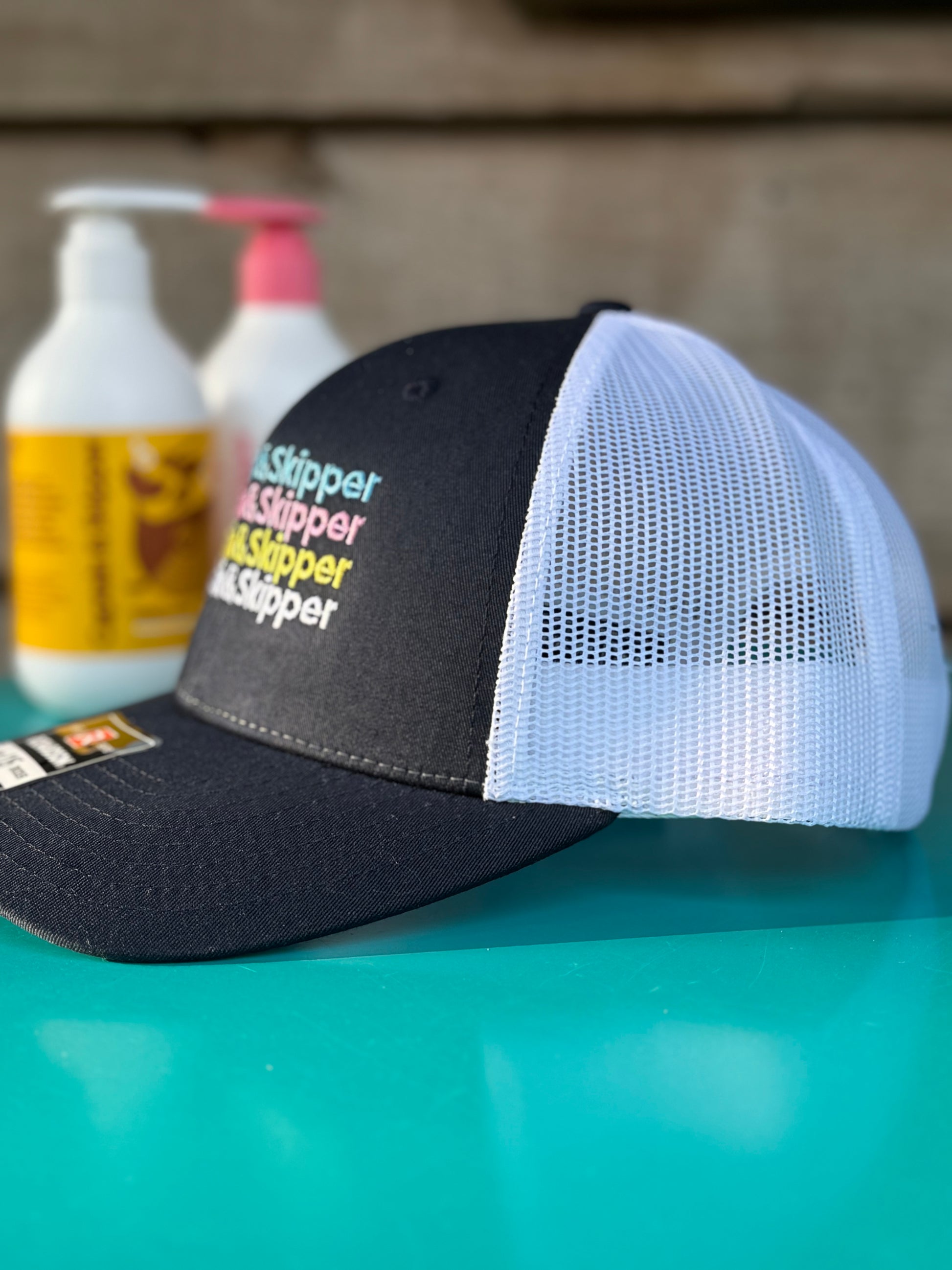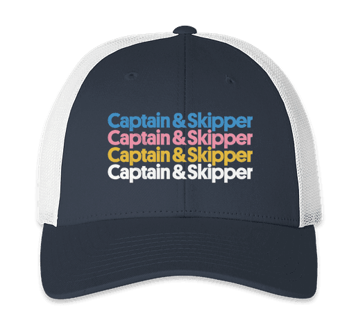 Just in time for Father's Day, this is the low profile trucker hat everyone wants! Custom embroidered with Captain & Skipper in 4 colors, this Richardson low profile hat comes with a pre-curved contrast stitched visor and a mesh back. It has a more tailored fit with an adjustable snap back for easy fit adjustment.