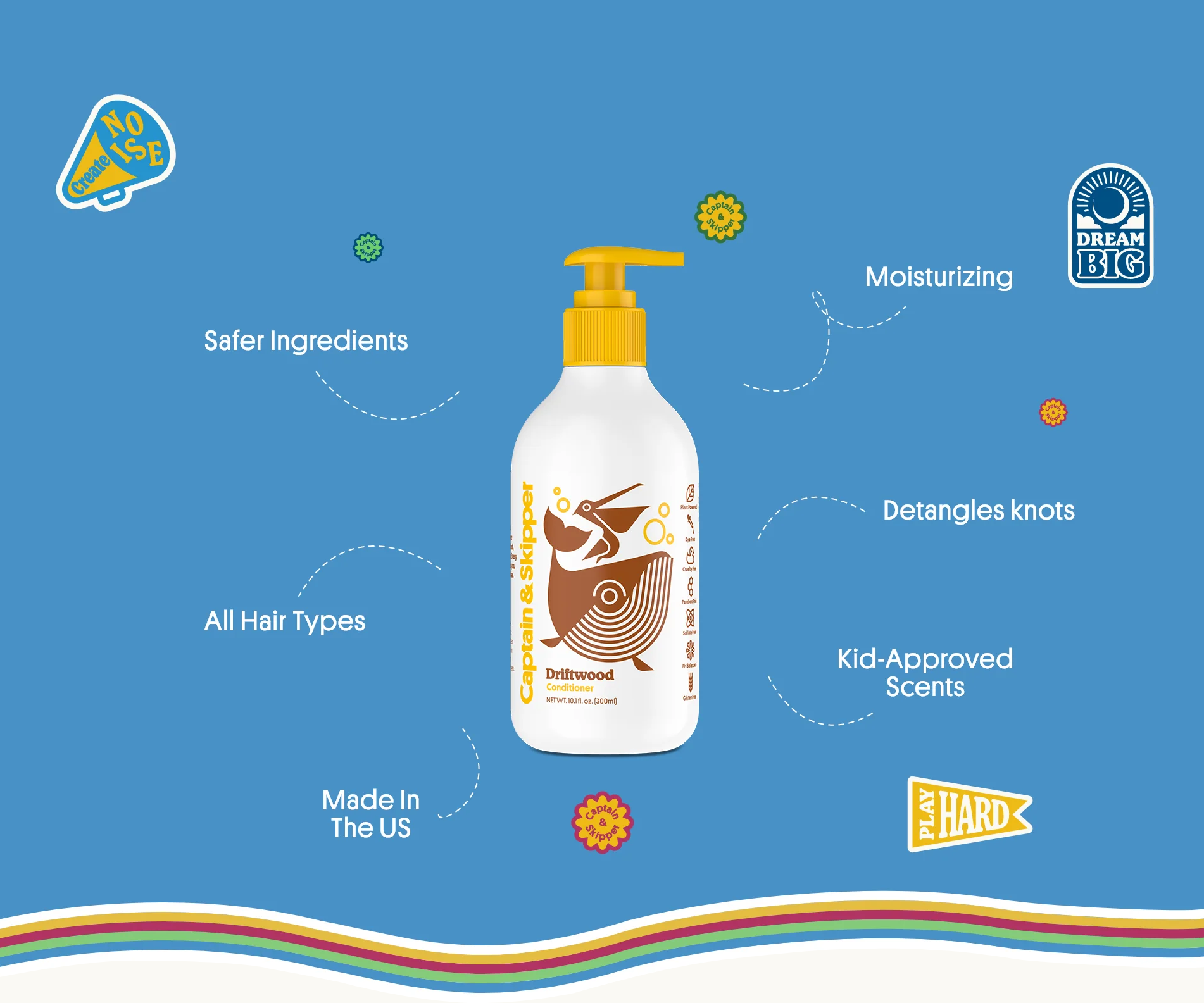 The enchanting, kid-approved scents in every bottle leave their hair smelling fun and clean after each wash. Using Captain & Skipper Driftwood Conditioner will leave your hair detangled, moisturized, and ready for its next adventure.